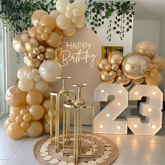 • Neutral Color Palette: The soft beige tone complements various event themes and color schemes.