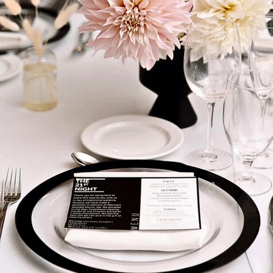 Regular price $3.50 CADRegular priceUnit price / perSale price $3.50 CADOur modern glass charger plate with a thick black rim strikes a perfect balance between elegance and contemporary style, making it an ideal choice for both formal and casual settings. Its best-selling status reflects its versatility and the ability to enhance the presentation of any dining arrangement, allowing hosts to impress their guests with a simple yet sophisticated touch.