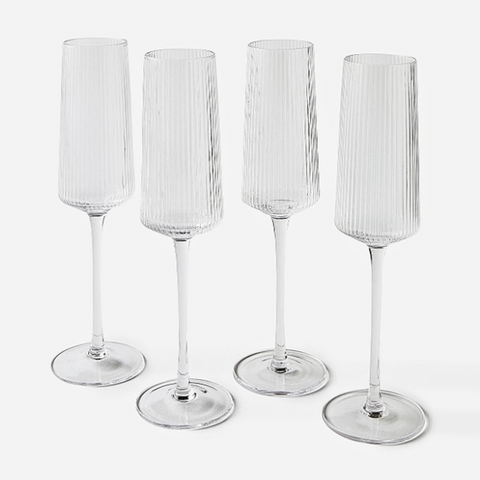 Regular price $0.74 CADRegular priceUnit price / perSale price $0.74 CADEnhance your upcoming festivities with our Nova Champagne Flutes in elegant clear stripes. These handcrafted glasses are ideal for serving your preferred sparkling wine. Each flute is individually blown, resulting in a distinct and unparalleled piece. Whether it's a lavish dinner event or a cozy evening at home, our Nova Champagne Flutes are guaranteed to make a lasting impression.