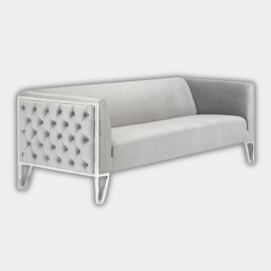 Regular price $350.00 CADRegular priceUnit price / perSale price $350.00 CADElevate your event with The Kyle Sofa, a perfect blend of comfort and sophistication. This silver sofa features tuxedo arms and high-quality velvet upholstery, offering a plush seating experience that exudes luxury. The tufted accents add a touch of classic elegance, while the low-profile design provides a sleek and modern aesthetic.
